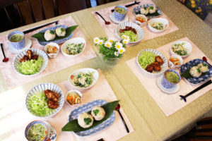 HOME > 教室の紹介 > グループでの教室にて 投稿日:2019年3月22日 グループでの教室の良いところはお互いに切磋琢磨出来る点。 そして何より出来上がりを皆さんで楽しめること。 鮮やかなお料理を前に目の保養も完了です!